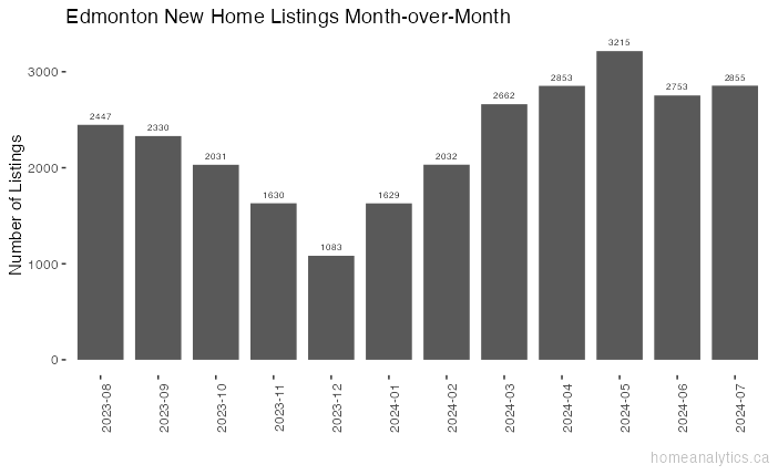This makes for a total of 2,855 homes listed for sale in Edmonton for July 2024, a 3.7% rise compared to the last month. If you are looking to review new listings, take a look at our collections for Northwest Edmonton Homes for Sale and Northeast Edmonton Homes for Sale.