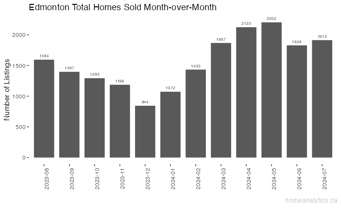 Total home sales in Edmonton increased by 21.2% year-over-year in July 2024.