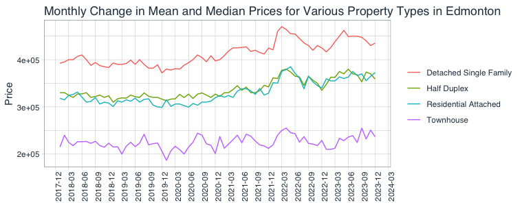 Half-duplex properties also exhibited stability with an average price of $365,921.1, witnessing a 1.9% monthly change and a substantial 6.5% year-over-year increase. The median price was $360,000, reflecting a -3% monthly change but a strong 9.8% year-over-year growth.