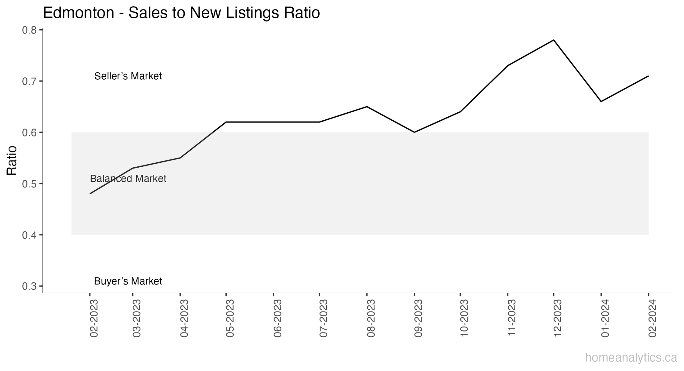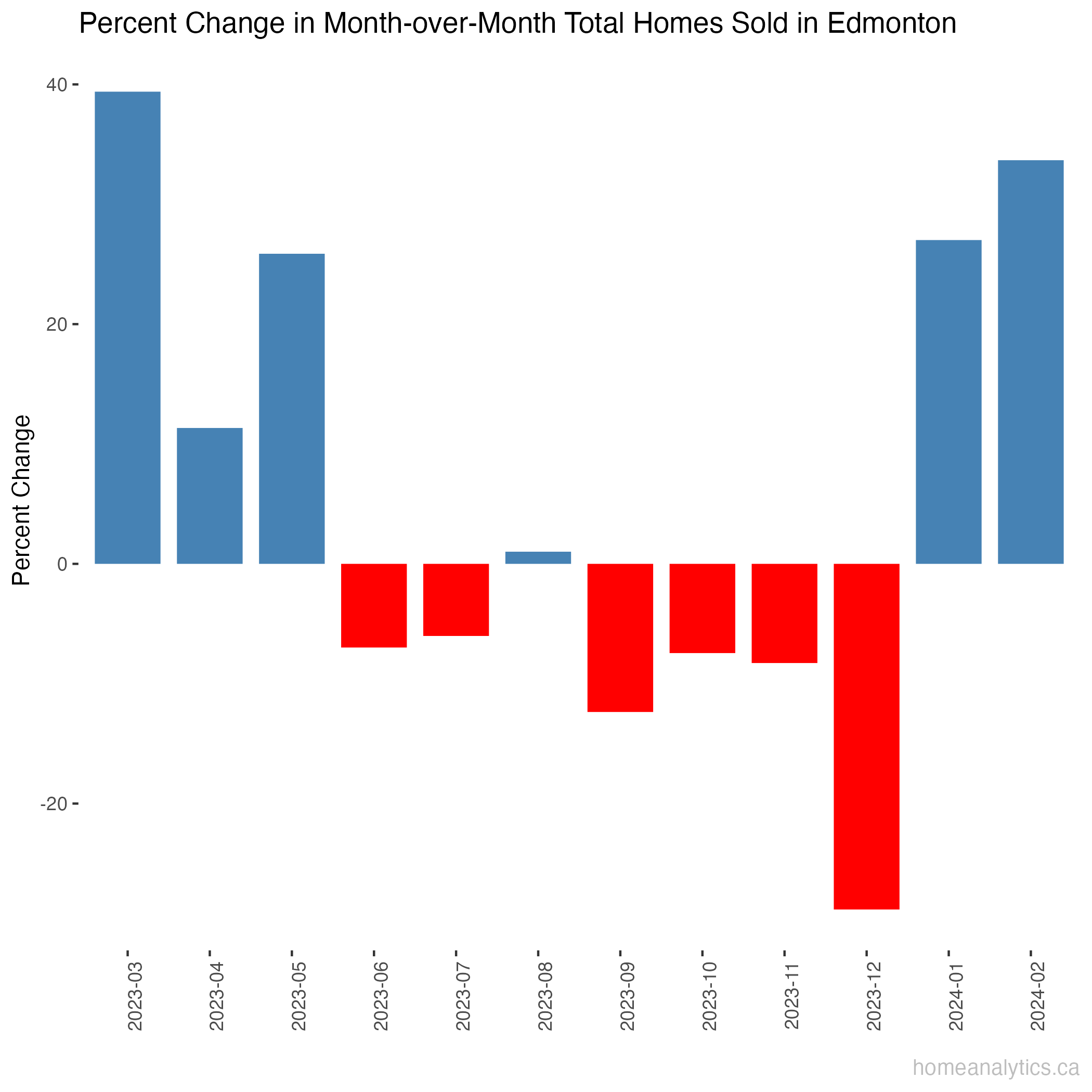 - There were 2,032 homes listed for sale in Edmonton in February, representing a 24.7% increase from the previous month.